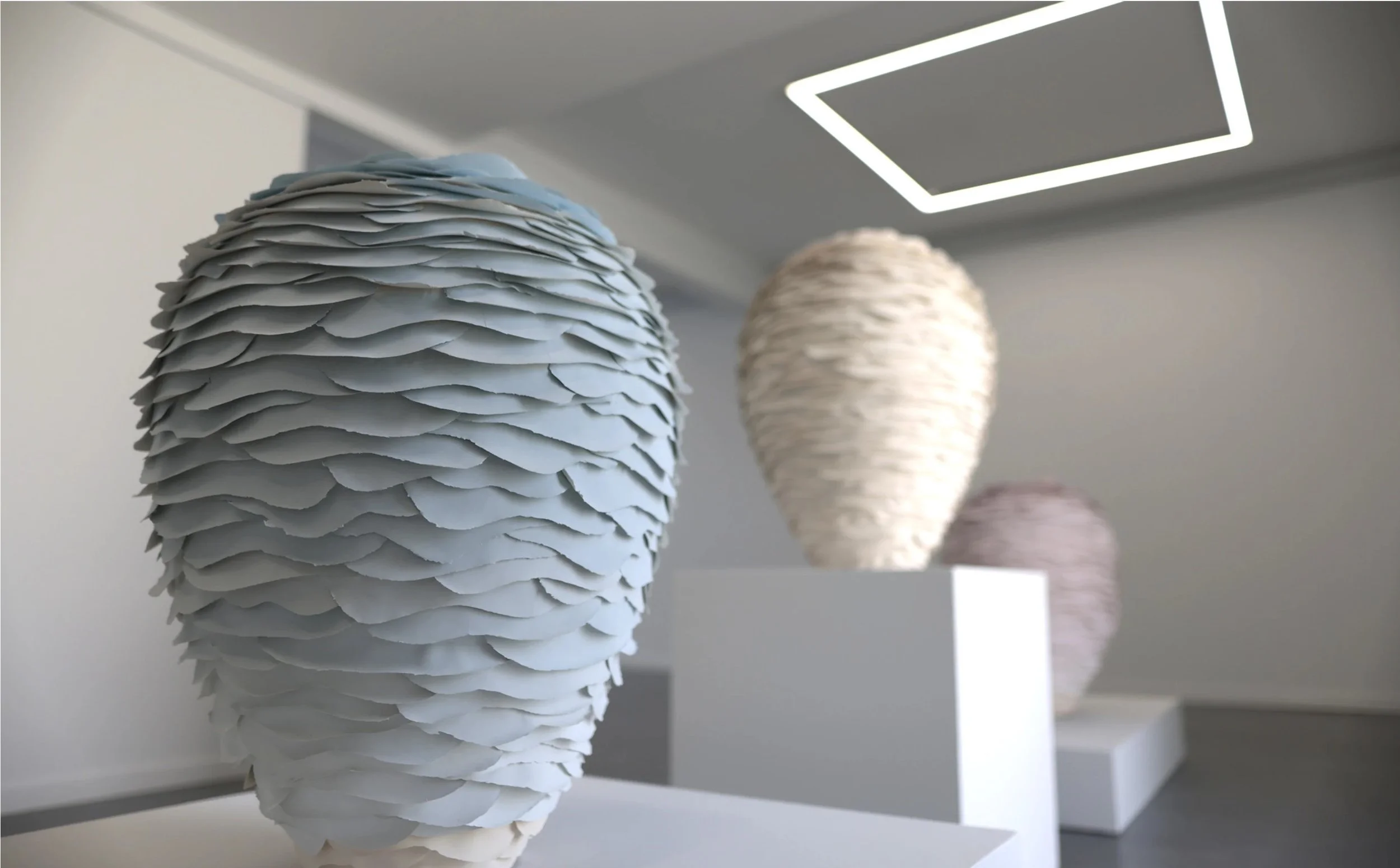 Yuro experiments with contemporary materials in diverse geometrical forms, incorporating mutable lighting to produce colour and movement.